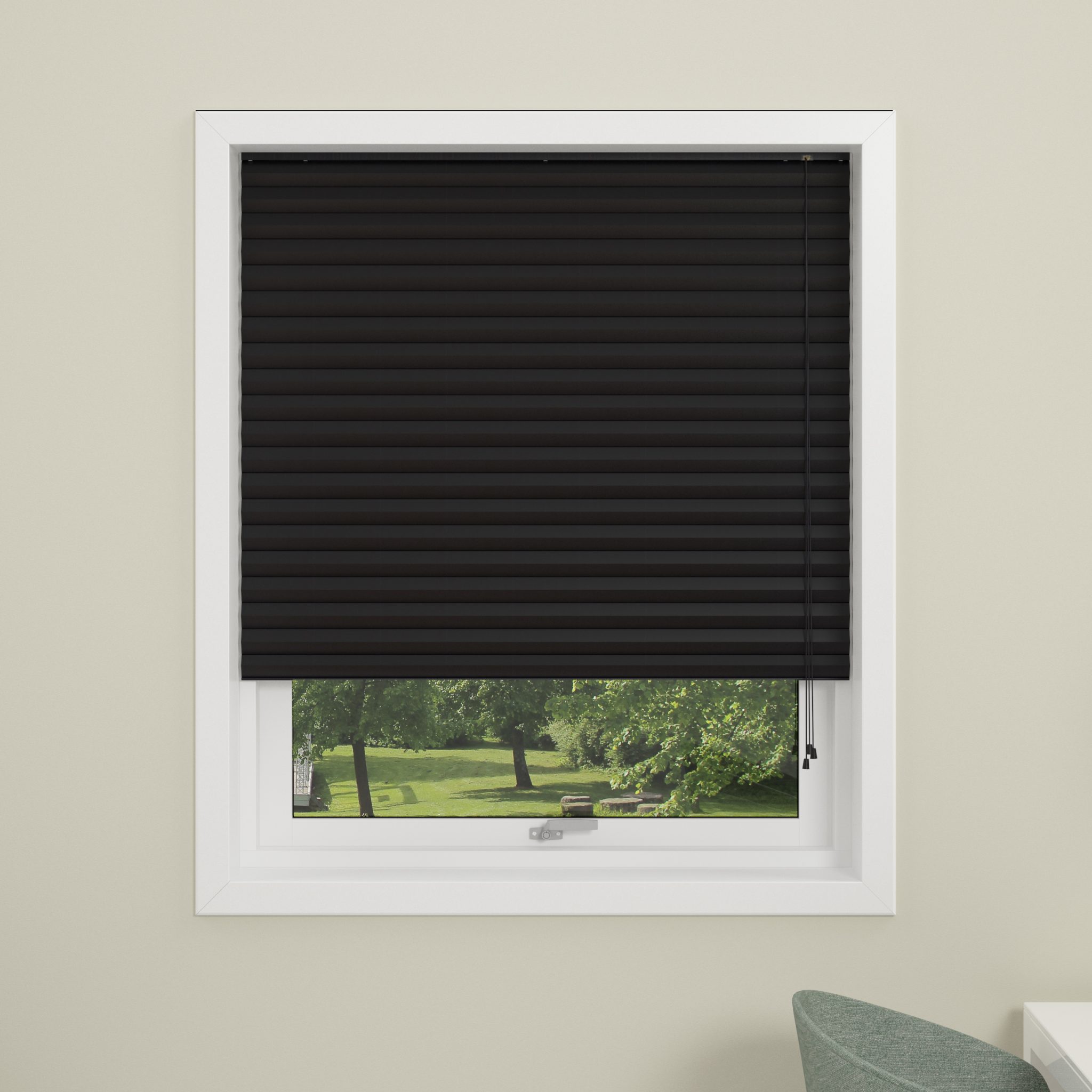 Plisségardinet er lavet i et mørklæggende væv, hvilket gør det perfekt til eksempelvis soverum eller rum, hvor du ønsker at mørklægge fuldstændigt.