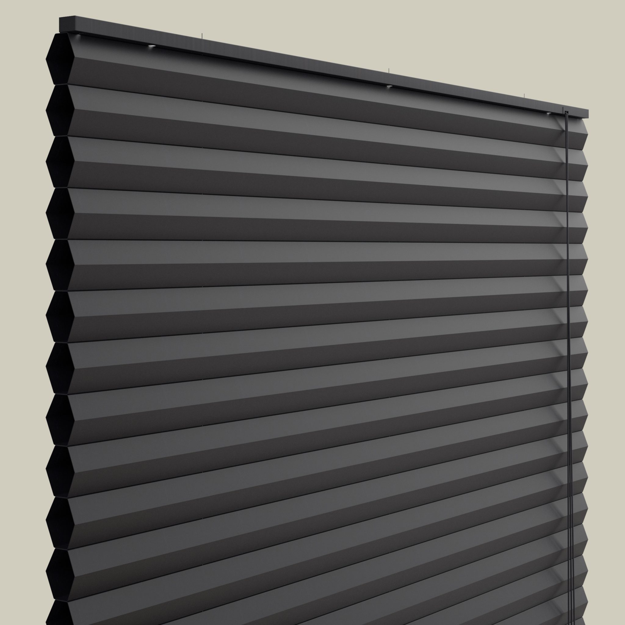 Dubai er med honeycomb væv, dvs. 2 lag stof, der sammen danner bikubeformede lommer. Indvendig har stoffet fået en coating, der gør gardinet 100% mørklæggende. Det er desuden utroligt smukt og enkelt at se på, da man ikke ser de indvendige snore, der normalt er synlige i et plisségardin. Et andet plus er, at plisségardinet virker isolerende for både kulde og varme, netop pga. coatingen.