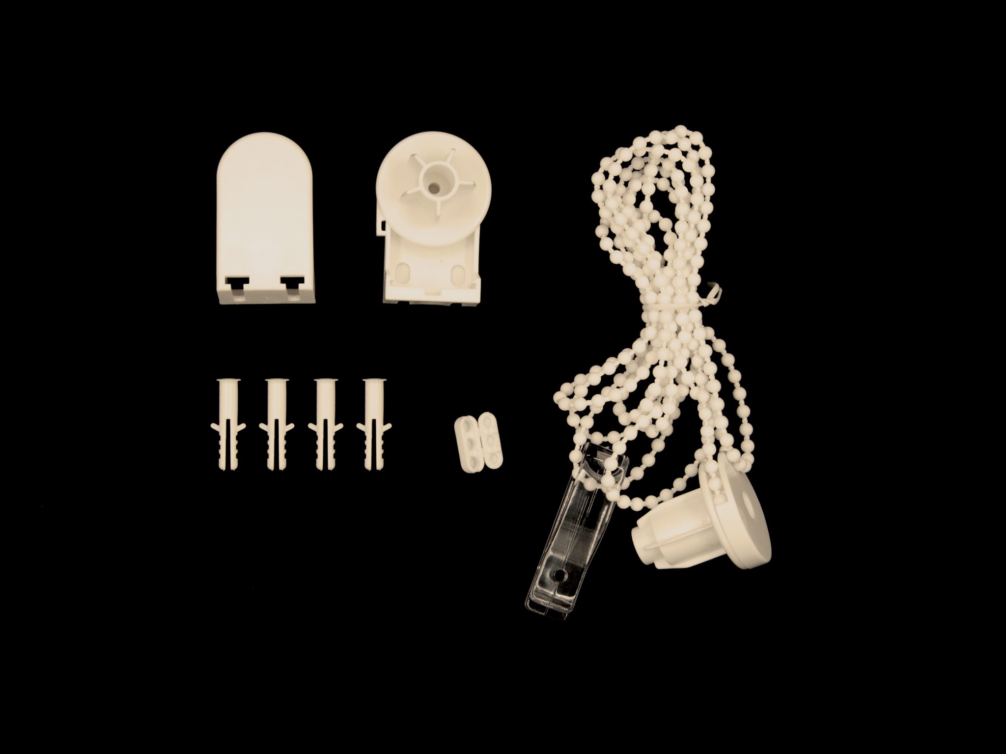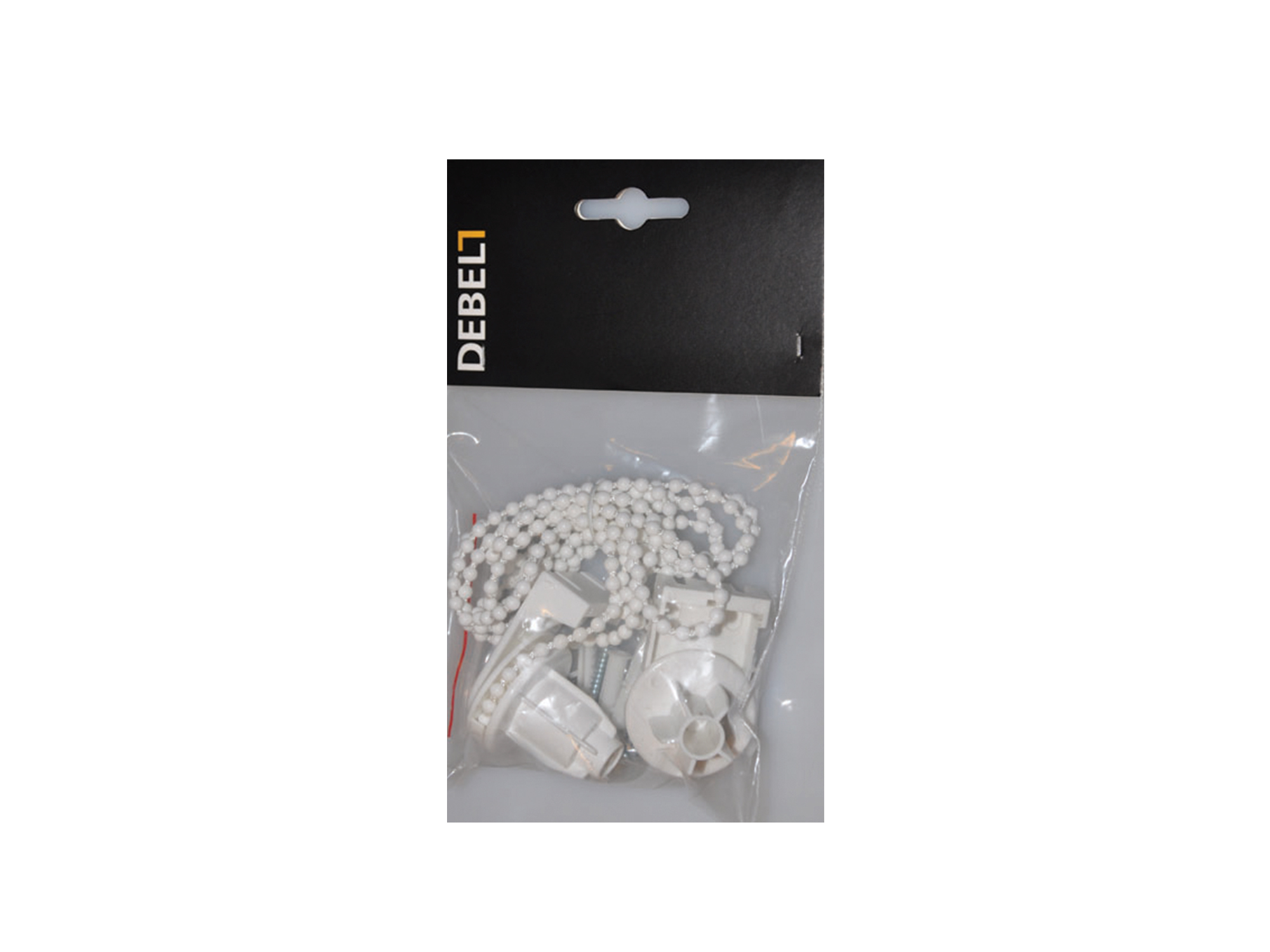 Tilbehørssæt indeholdende kædetræk, beslag og samleled til DEBEL rullegardiner.