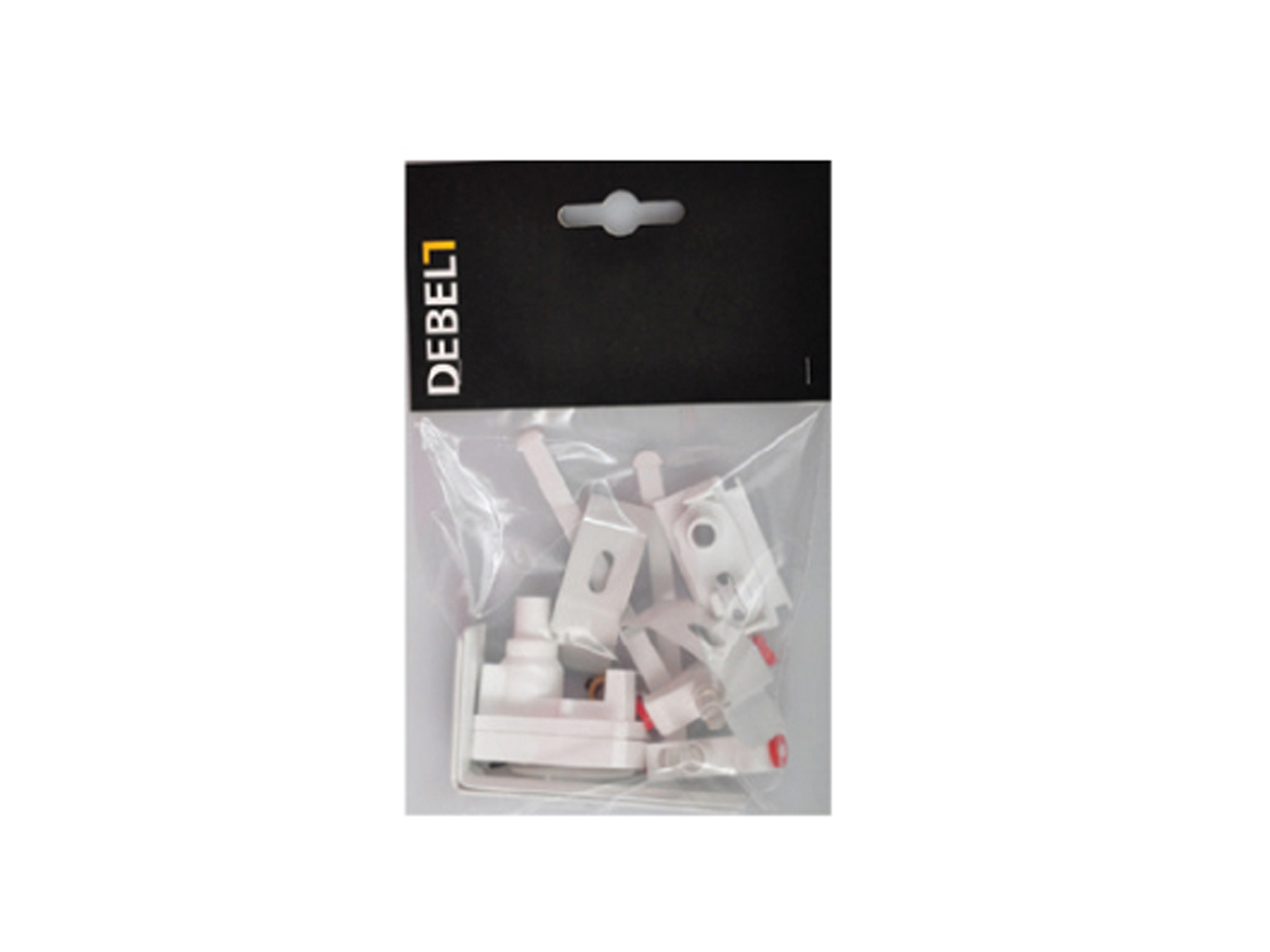 Lamel-Kitsæt til lamelgardin. Kitsættet indeholder 6 x bundvægte, hængere og bundkæde til lamelgardinet. Kit-sættet findes i farverne: hvid, grå og sort for at matche dine lamelgardiner bedst muligt.