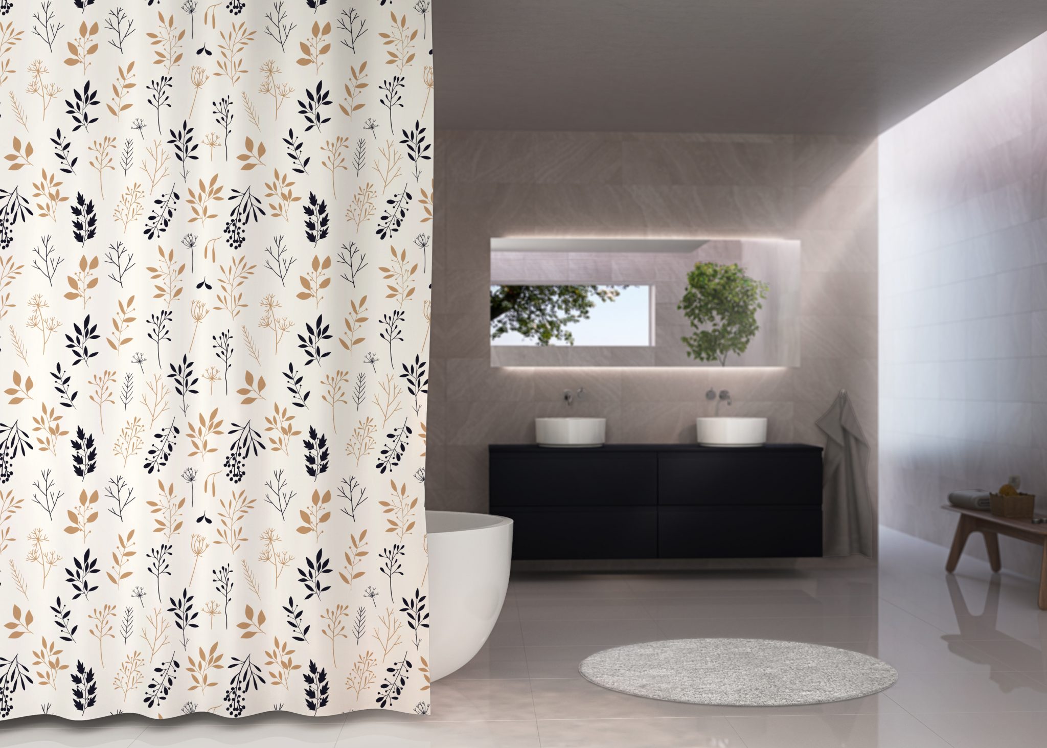Lombok badeforhænget har et rent og minimalistisk design, som tilfører et moderne udtryk til badeværelset. Ud over at være praktisk og funktionel bidrager det også til indretning, og de sort-hvide farver gør det nemt at matche, eller skabe kontrast, med andre tekstiler på f.eks. bademåtte, håndklæder og sæbepumpe.
