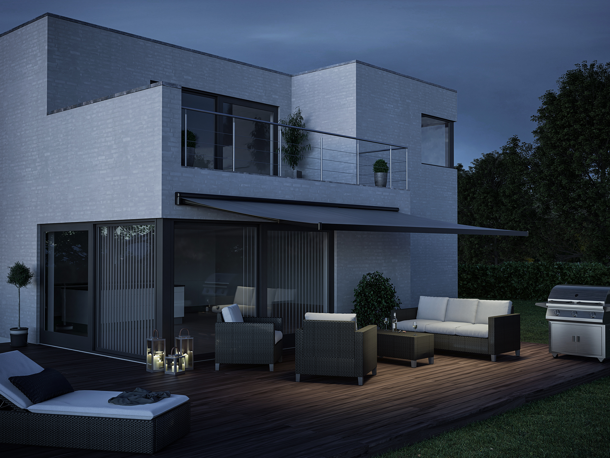 Sigma er en flot og eksklusiv markise, hvor der virkelig er kræset for detaljerne. Markisen er med motor og trådløs fjernbetjening. Den passer perfekt til den store terrasse, der anvendes ofte, og med det justerbare LED-lys i forbommen kan de hyggelige stunder på terrassen forlænges til langt ud på aftenen. Markisen er hellukket, hvilket gør, at dugen er beskyttet mod alt slags vejr, når den ikke anvendes. Den miljørigtige dug er gennemfarvet og har, for ekstra beskyttelse, fået en “Resistant Surface Treatment.”